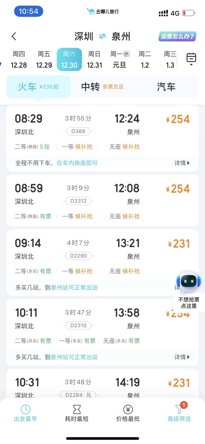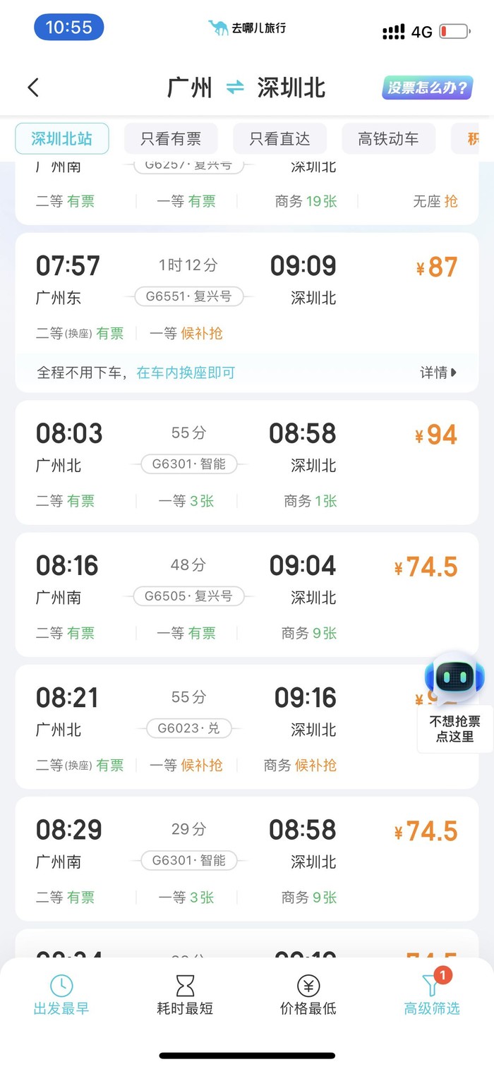 - [ ] 广州-深圳北站-泉州,建议买8:57出发广州南-深圳北9:34到,10:11出发深圳北-泉州13:58到